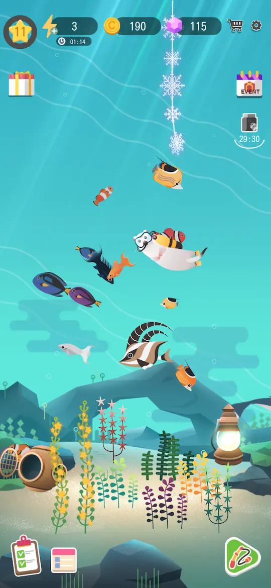 #Merge Aquarium・・・1日目、レベル11まで。あまりにも、ポイ活に対するやる気が低下してしまっているので、ゆるくできそうなものを始めてみました。